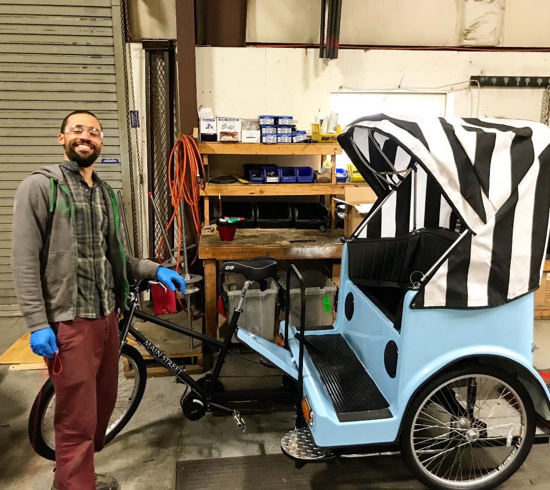 *Photo shows Classic frame. Also available with Broadway frame (includes front hand rail and side steps). We offer many models and options to meet your needs. To order your new pedicab, we ask for half of the total as a deposit to begin assembly. Balance is due prior to shipping. All prices are in USD and are for the base model. We accept Bank Checks, Money Orders, Visa and Mastercard. All Main Street Pedicabs™ are made in our Colorado, USA factory at 11811 Upham St. #9 Broomfield, CO 80020. Contact us to purchase your new pedicab.